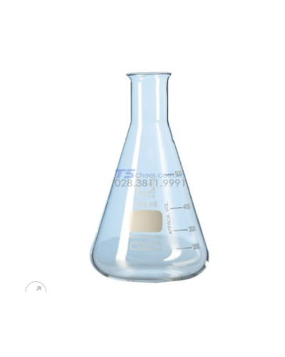 - Bình tam giác cổ hẹp sản xuất từ chất liệu thủy tinh borosilicate 3.3, khả năng chịu nhiệt cao